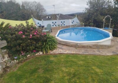 La cocina independiente se conecta con un luminoso salón comedor, ideal para reuniones familiares y con las vistas al entorno natural que rodea la propiedad. Desde la sala de estar, se accede al hermoso jardín, donde encontrarás árboles y plantas ornamentales que aportan un toque de frescura, y con una piscina climatizada por bomba de calor perfecta para disfrutar durante todo el año, asi como zona de parrilla para disfrute en todas las reuniones de familia y amigos.